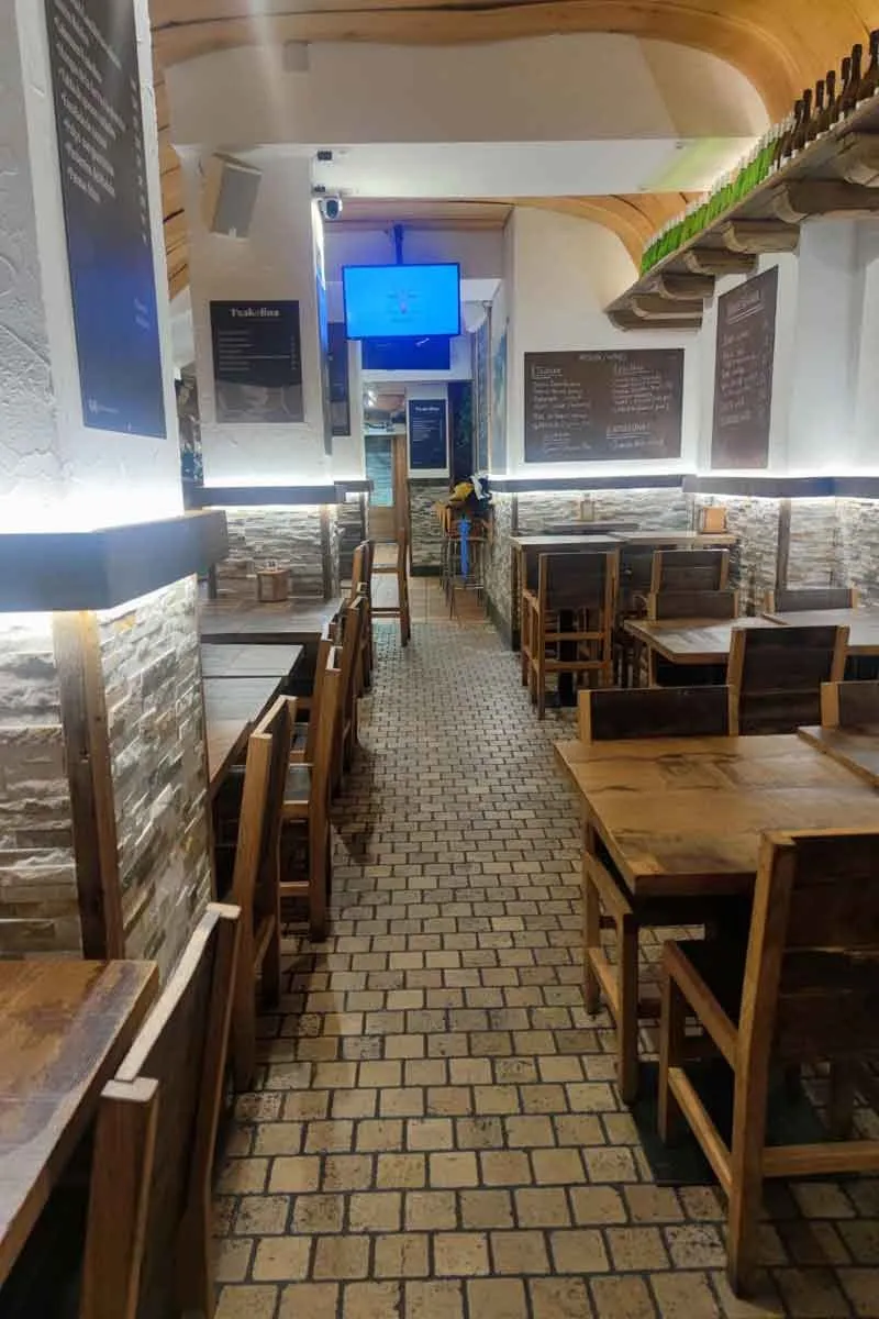 La barra y algunas mesas no son accesibles a personas usuarias de silla de ruedas