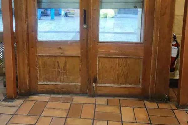 ● La puerta es manual con una zona libre de paso de 80 cm de ancho y abre hacia el exterior.
