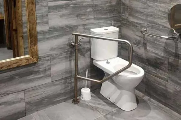 ● El lavabo cuenta con espacio libre para la aproximación de personas usuarias de sillas de ruedas y grifo con pulsador.