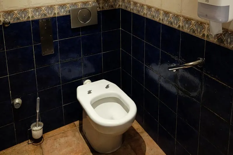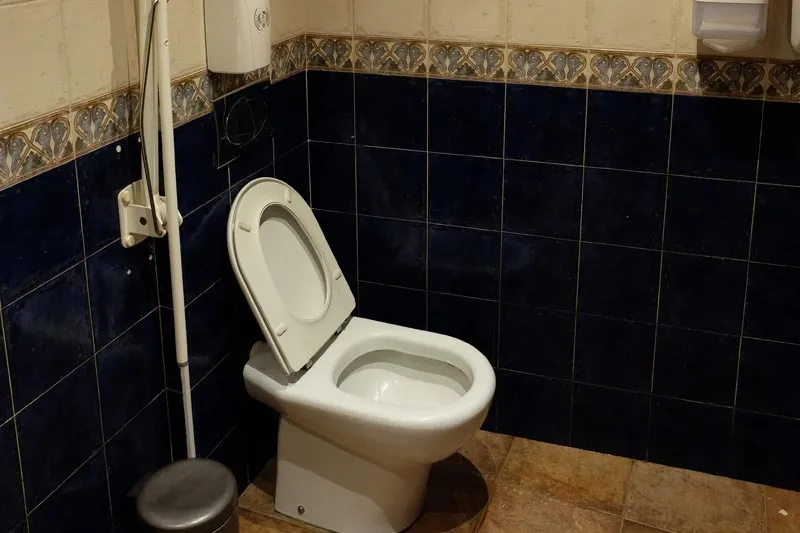 ● Los inodoros tienen una barra de apoyo: en la cabina de mujeres, la barra es abatible y, en la de hombres, fija.
