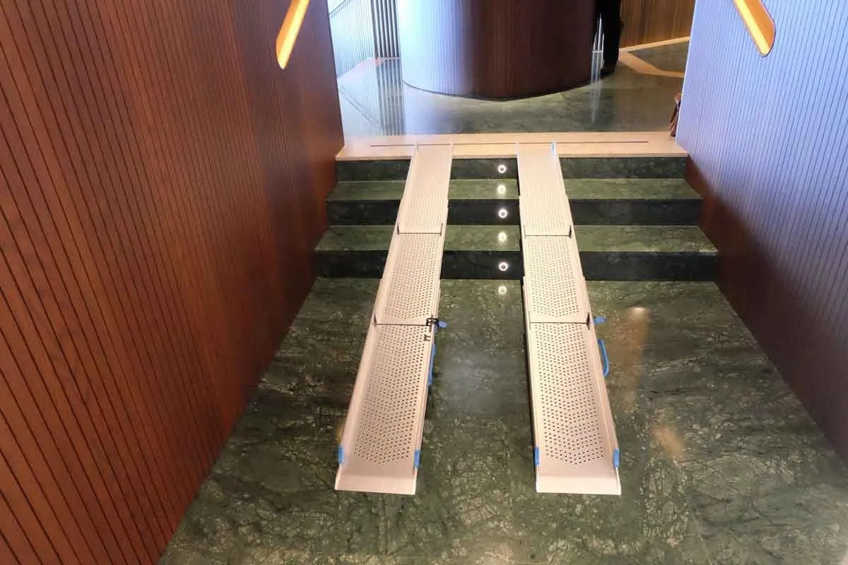 ● Las personas usuarias de silla de ruedas pueden acceder a la zona de las vistas a través de una rampa móvil.
