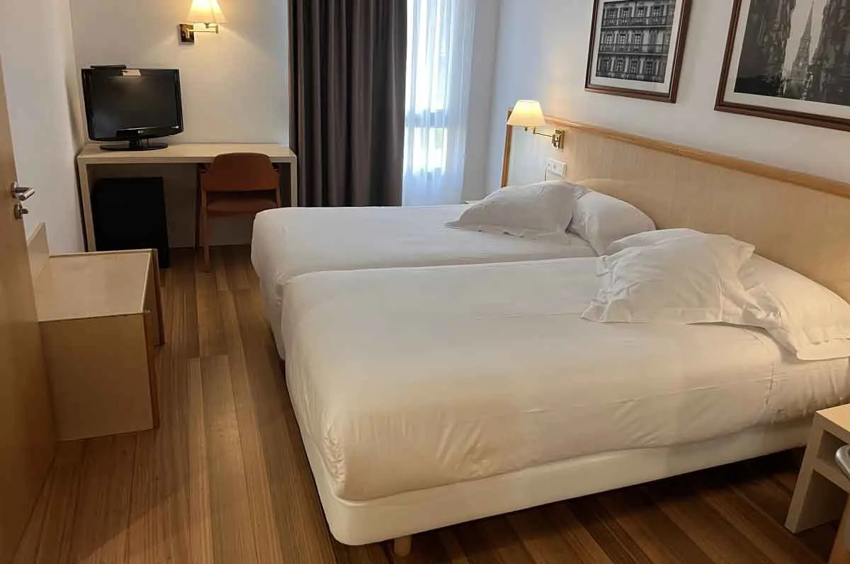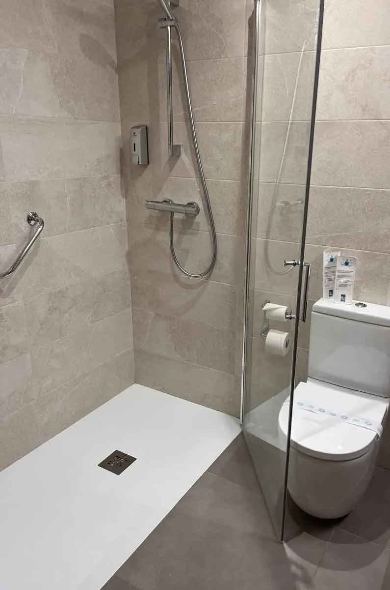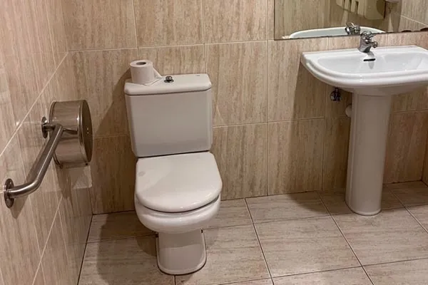 Komunera joateko eskailerak baino ez daude. Gurpil-aulkian doazen pertsonek hoteleko komuna partekatuak erabili behar dituzte.