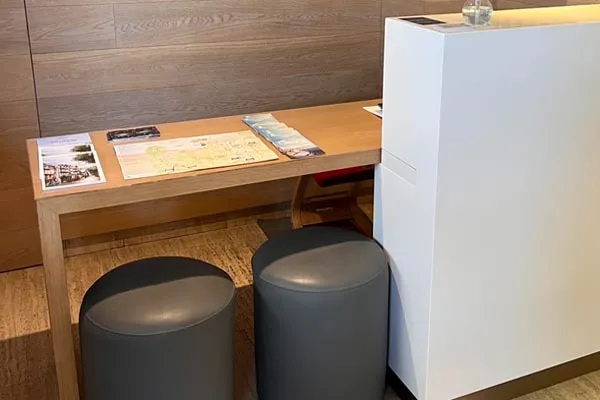 ● Arreta-mahaiaren beheko eremua lurretik 78 cm-ra dago eta gurpil-aukia duten pertsonak hurbiltzeko prestatuta dago.