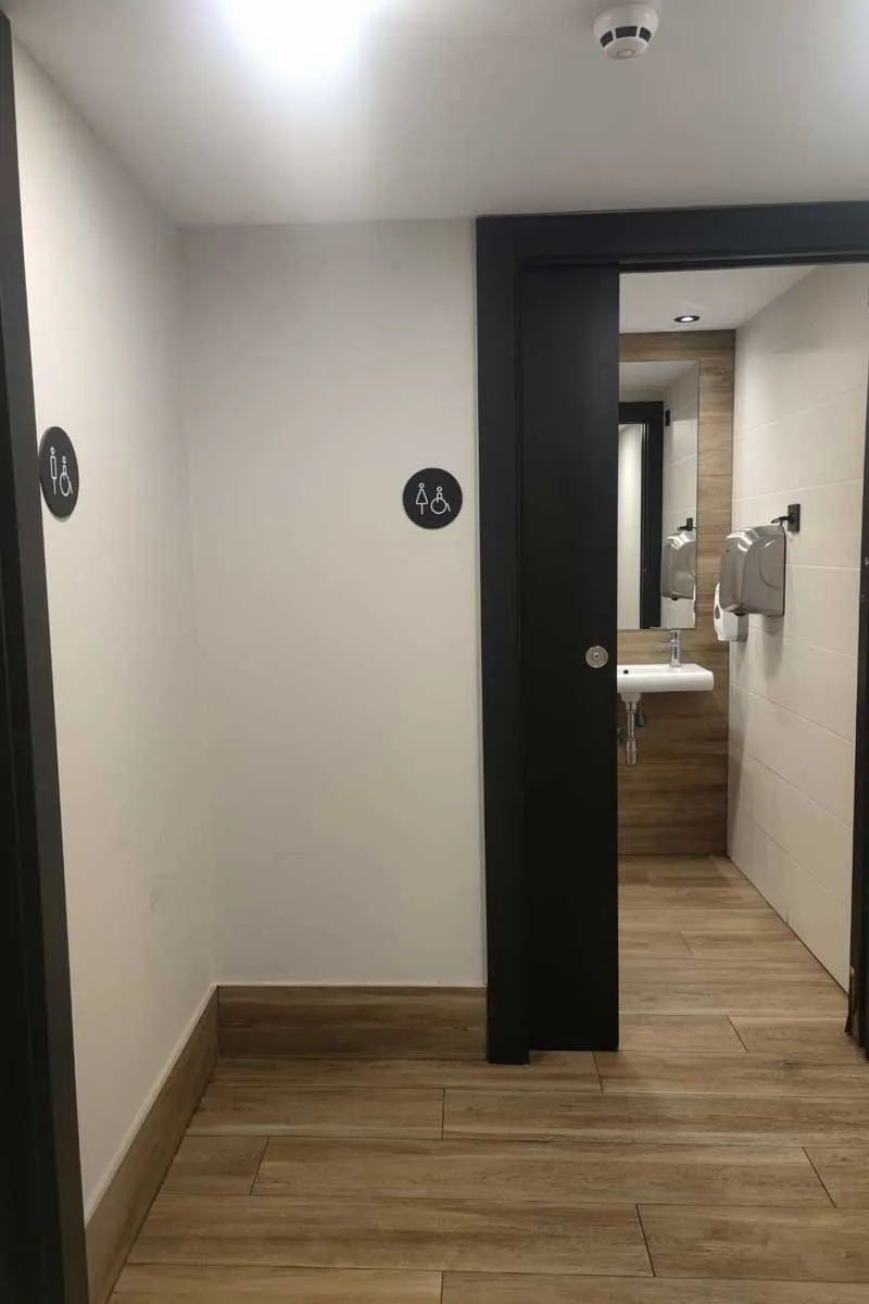 ● Gizonezkoen kabinaren atearen igarobide libreko eremua 85 cm zabal da.