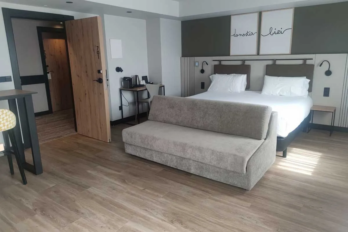 Hiriko oasi hau Zurriola hondartzatik oinez 2 minutura dago, Donostiako erdigunean, Alde Zaharra eta Kursaala bertatik bertara dituzula. RENFEren eta autobusen geltokietatik 15 minutura dago oinez. Hiriko irteeretara ondo komunikatua. Atsedena, teknologia eta diseinua eskutik doaz hotelaren 27 logela moderno eta erosoetan. Guztiek dute SmartTV bat, dagokion entretenimendu-sistemarekin, giroa pertsonalizatzeko aukera eta ChromeCast gailua, doako abiadura handiko Wifi konexioarekin.