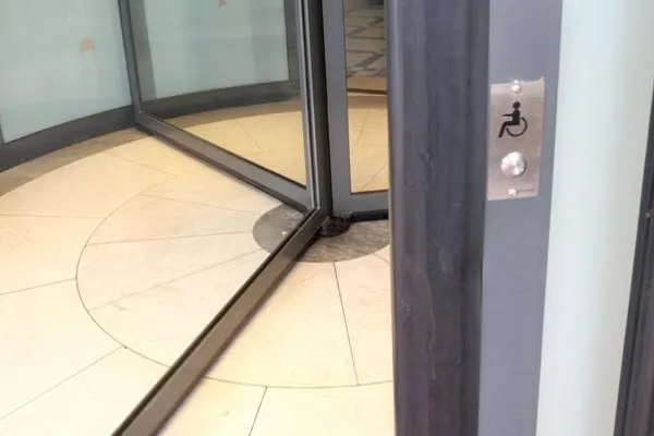 ● Argentinar Errepublikaren pasealekuko sarrera: Alde banatan eskubandak dituzten eskaileren bidez. Beirazko ate birakaria (abiadura moteltzeko botoi bat dago).