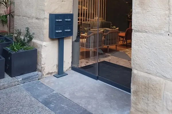 ● Igogailuek braille formatuko eta goi-erliebeko botoiak dituzte barruan eta kanpoan, baita solairuaren zenbakia adierazteko abisu bisualak ere.