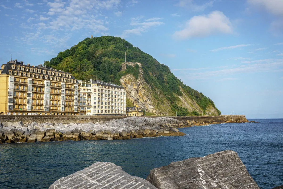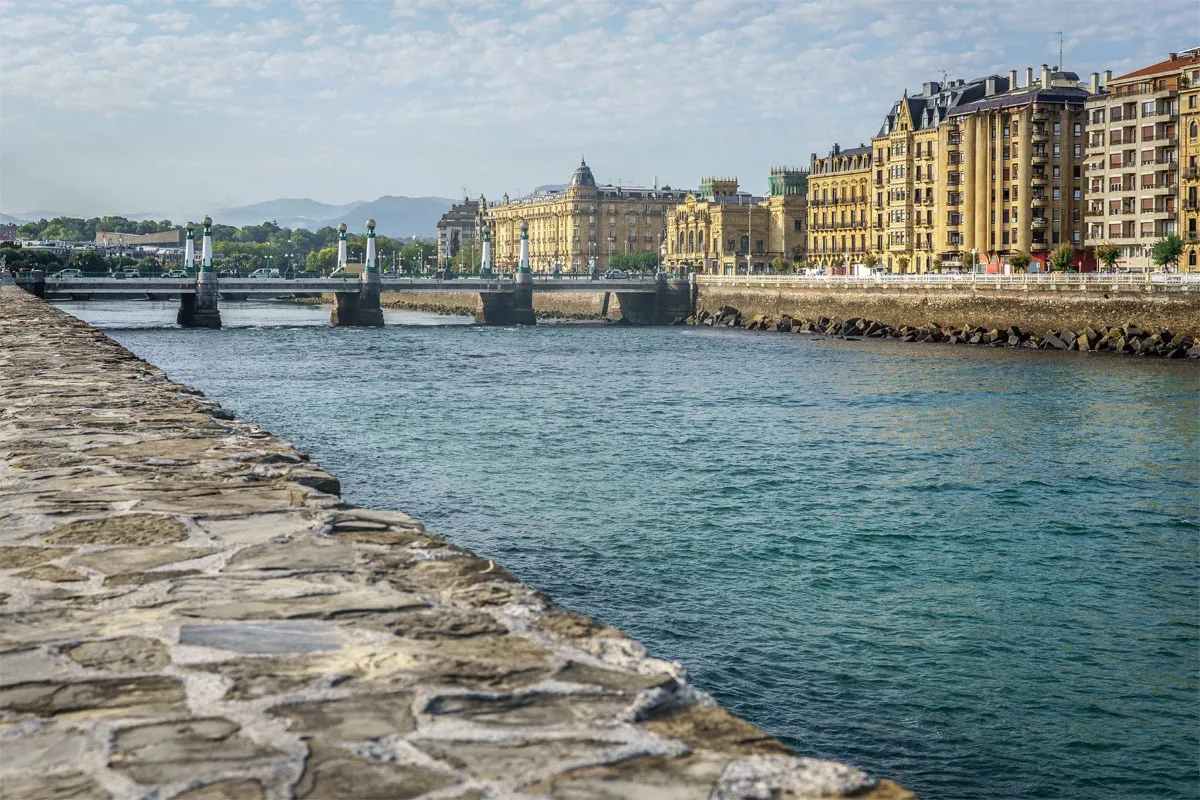 Comenzaremos el paseo en la explanada que hay junto al edificio del Kursaal. Justo donde empieza el espigón. Si nos colocamos mirando al mar, a nuestra izquierda veremos como el río Urumea desemboca en el Cantábrico, y el monte Urgull tras él.