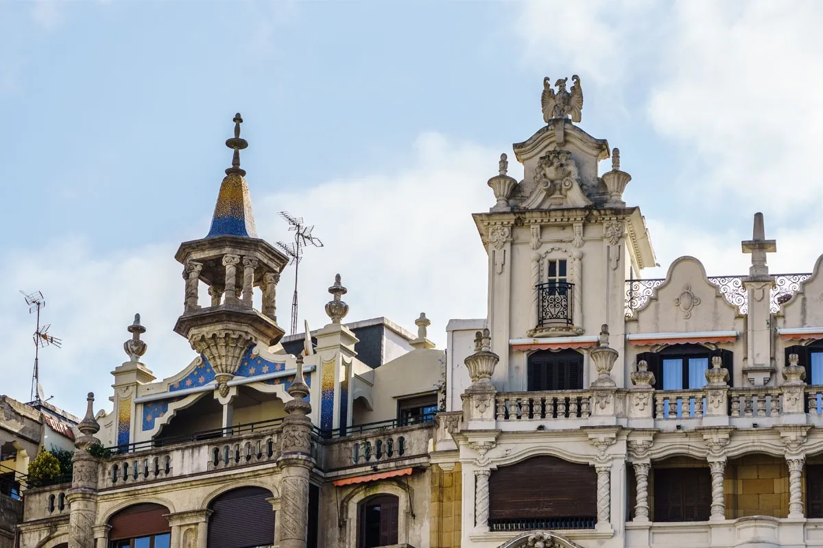 Al llegar al puente de Santa Catalina dejaremos el borde del río para poner la atención en lo alto del majestuoso edificio que une el Paseo Colón con la Calle Miracruz, para fijarnos en las dos águilas, de piedra claro, que coronan el tejado. Parece que estas aves rapaces acechen desde lo alto a su presa, esperando el momento oportuno para abalanzarse sobre ella. La escultura de águila más conocida de la ciudad es la que se encuentra en la Plaza del Centenario, pero no es la única de la ciudad. (Por lo que se ve Gros no tiene nada que envidiarle al centro… tiene un paseo de tamarices y a falta de una águila, dos. )