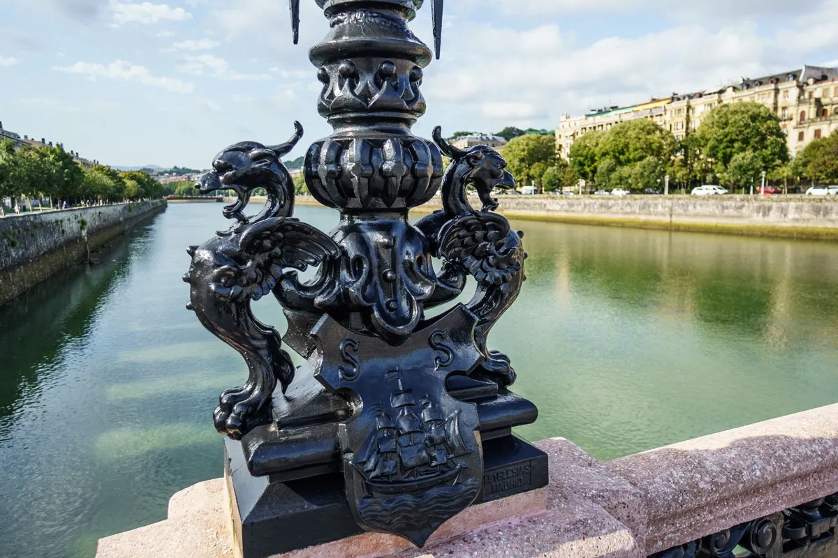 Debemos alzar la vista sobre los cuatro obeliscos para observar los caballos dorados que los coronan alzándose hacia el cielo. Las estatuas están realizadas en cemento y están pintadas de color oro. Además de los caballos, este emblemático puente donostiarra cuenta con otros animales mágicos, protagonistas de cuentos y viejas leyendas, los dragones, que nos ven pasar desde lo alto de las farolas o escondidos en las barandillas.