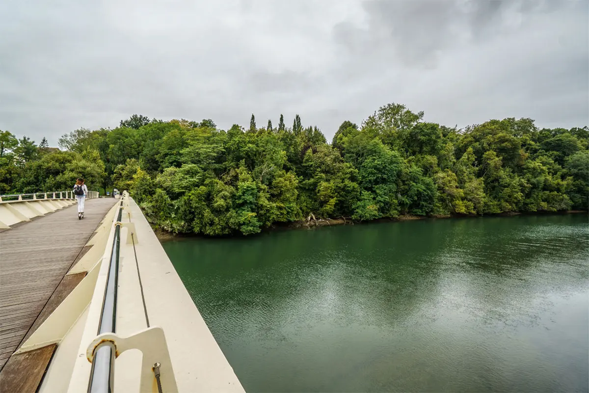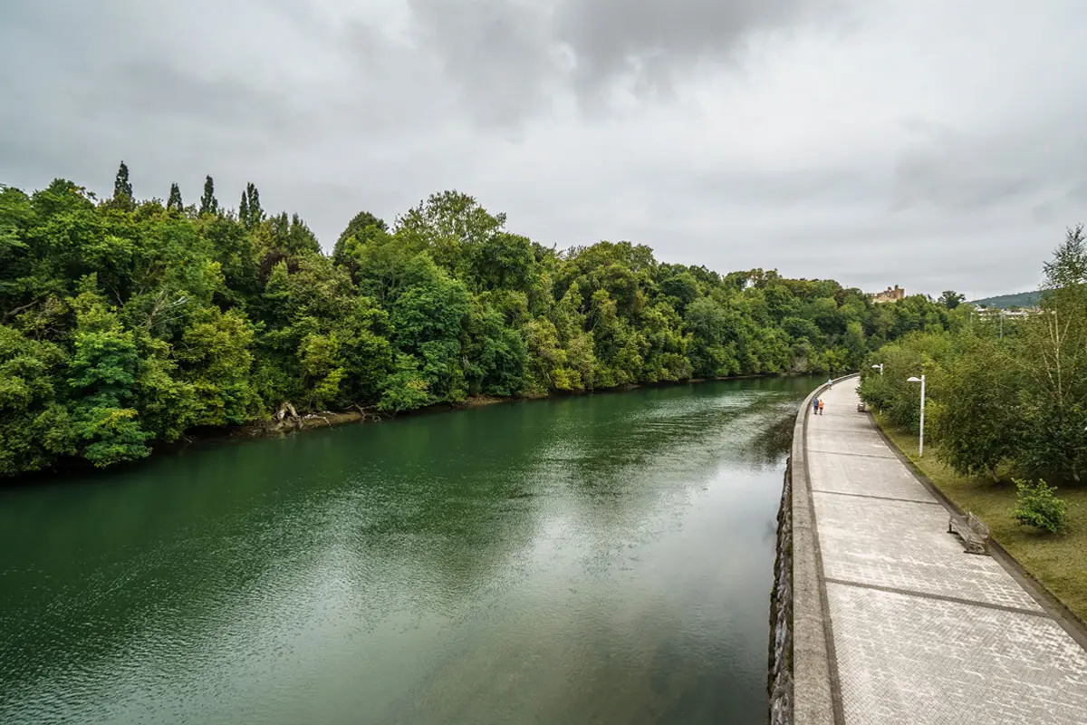 Al llegar a la altura de la pasarela Mikel Laboa que une el barrio de Riberas de Loiola con el parque Cristina Enea, observaremos que los edificios de la otra orilla dejan paso a árboles y plantas. Estamos ante el parque Cristina Enea.